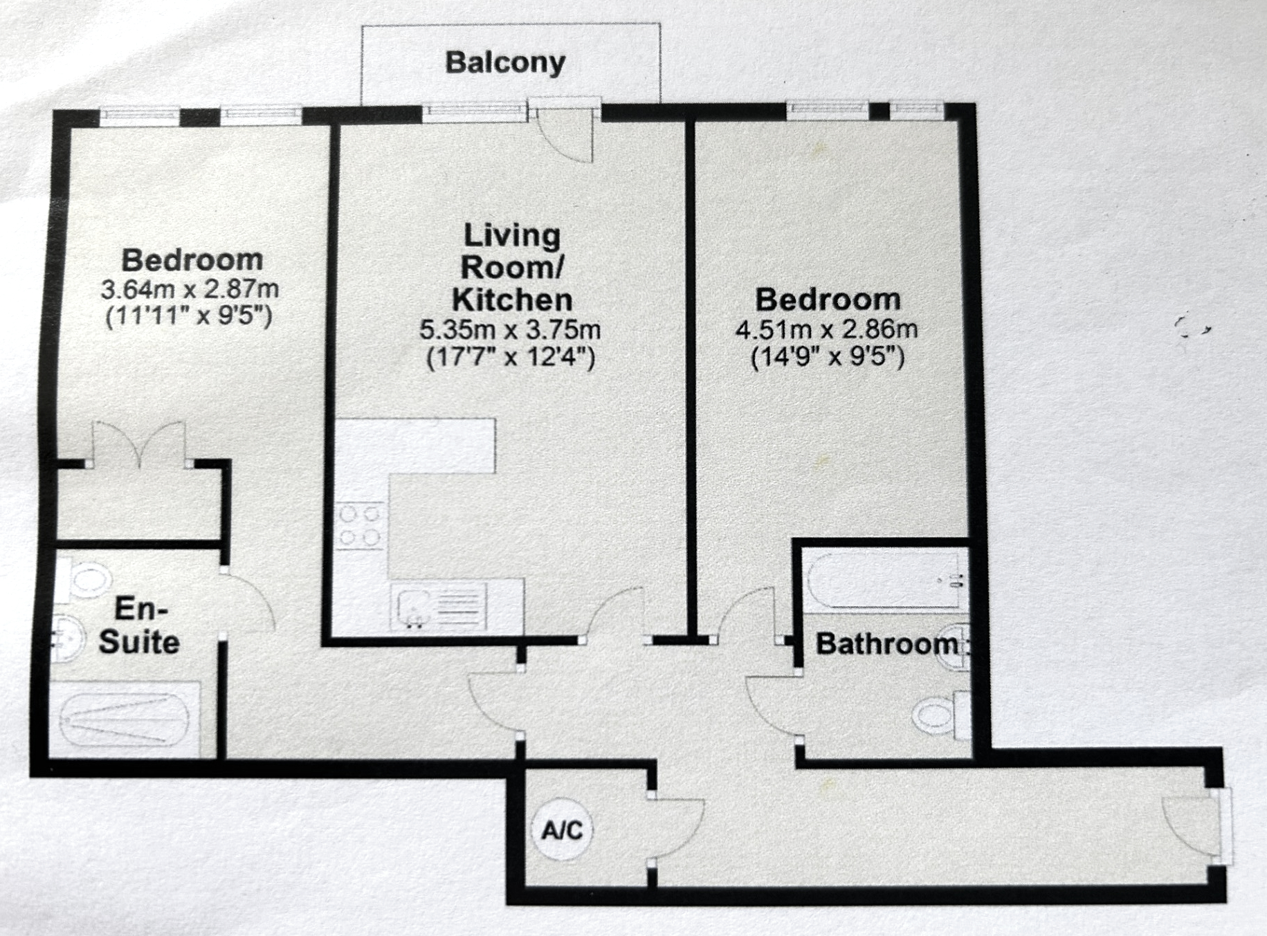 Bedroom 11'11" x 9'5" (3.63m x 2.87m).