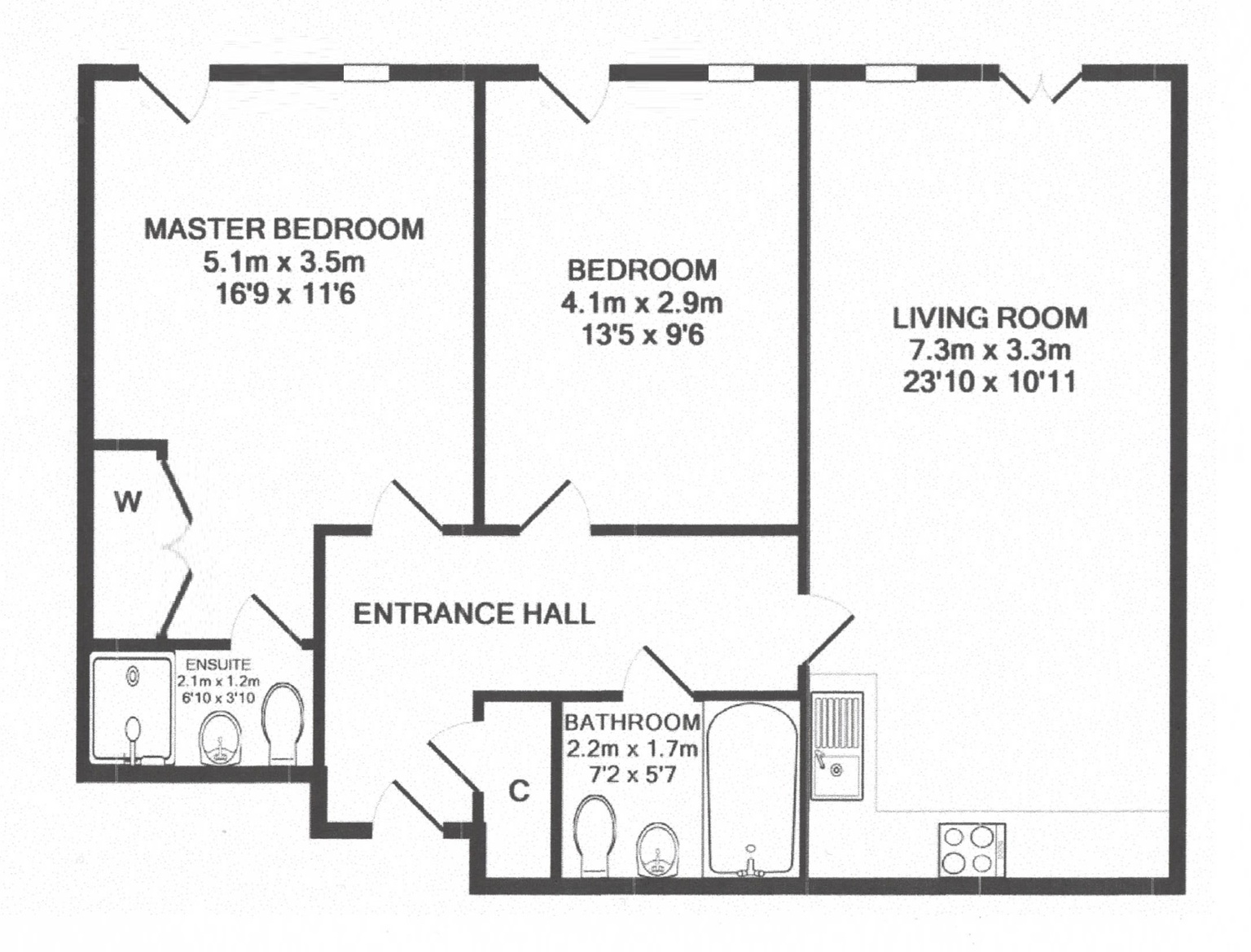 The Juliet balcony from the 2310 x 1011 open plan living area offers panoramic views across the quays towards Marina 2. Both bedrooms also benefit from Juliet balconies, with floor-to-ceiling double-glazed doors maximising light and fresh air, which fills the rooms. These also take full advantage of the views from this highly desirable location. The master bedroom measures 169 x 116 with an en suite shower room and fitted double wardrobe. The generous second double bedroom measures 13'5 x 9'6, also with a Juliet balcony.