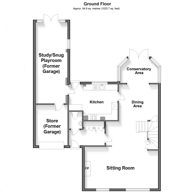 Study/Snug/Playroom (Former Garage) 22'2" x 8'10" (6.76m x 2.7m). Double glazed window to side. French doors to rear. Laminate flooring. Upright radiator.