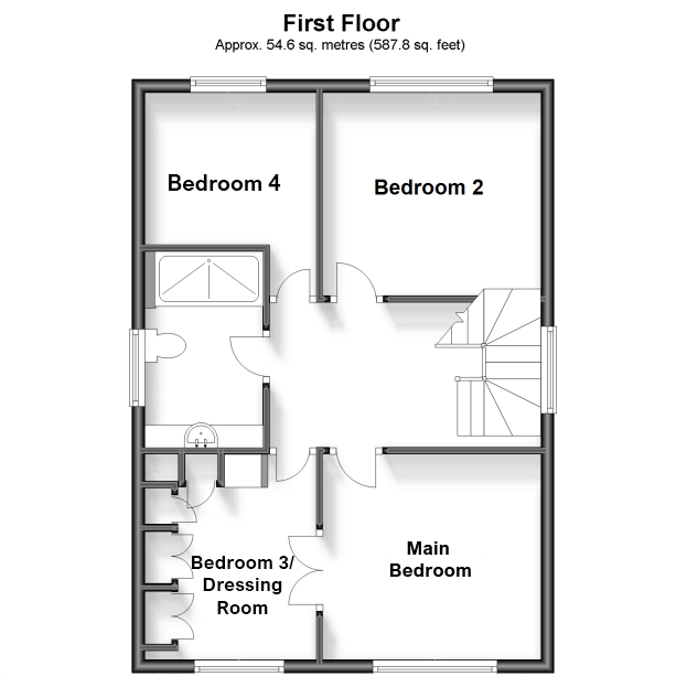 Main Bedroom 11'5" x 10'9" (3.48m x 3.28m). Double glazed Georgian style window to front. Carpet. Plain coved ceiling. Radiator. Double doors leading to dressing rooms/Bedroom Three.