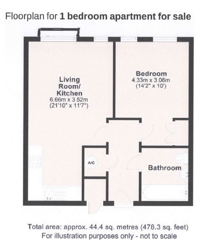 Bedroom 14'2" x 10' (4.32m x 3.05m).